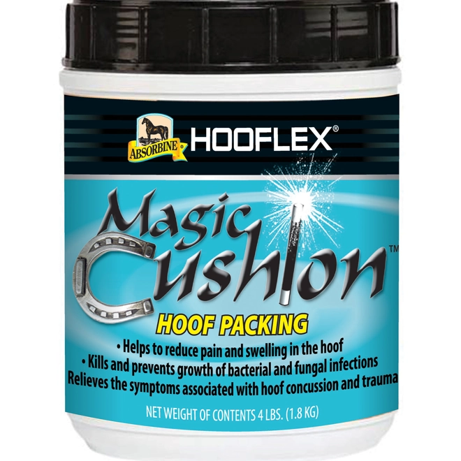 Hoof packing to help support hooves in several ways including relieving sole bruising and post-trimming soreness, treating abscesses and fighting bacterial and fungal infections in the hoof. It can be used as needed, or packed under a shoe and pad and left in place throughout the shoeing cycle. It helps to reduce pain and swelling in the hoof, relieves the symptoms associated with hoof concussion and trauma and helps to reduce unwanted heat in and around the hoof structure.