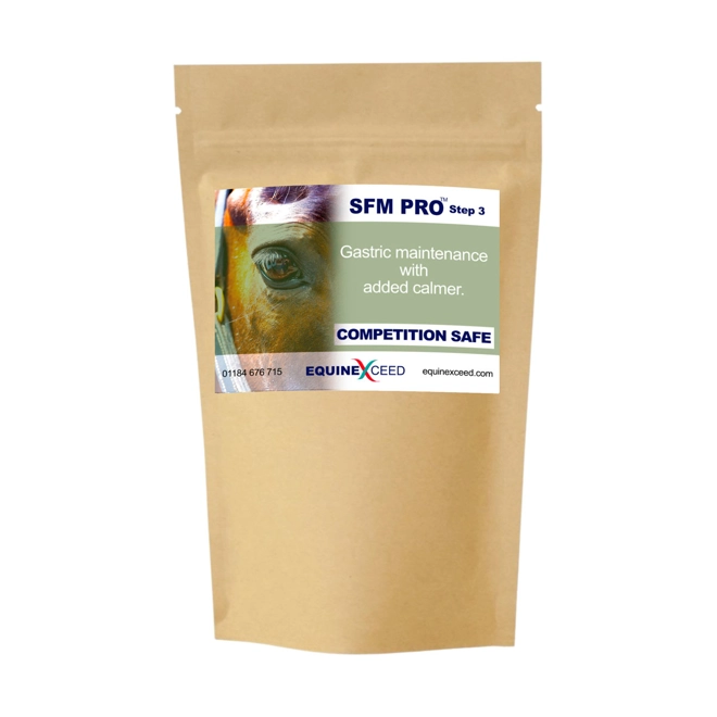 Gut maintenance to support a healthy Digestive System. 100% Natural Ingredients SFM PRO is a daily gut maintenance supplement to support the health of the gut throughout the entire gastric system including the hind gut. A complete supplement that uses the power of Nitric Oxide and a combination of high-quality ingredients. Ingredients include L-Arginine, essential vitamins, minerals and amino acids which help provide the digestive system with all the nutrients it requires to maintain a healthy gut function. It does not interfere with the acid production required within the digestive system. Competition safe and suitable for long term use. Conforms with FEI Prohibited Substances List.
