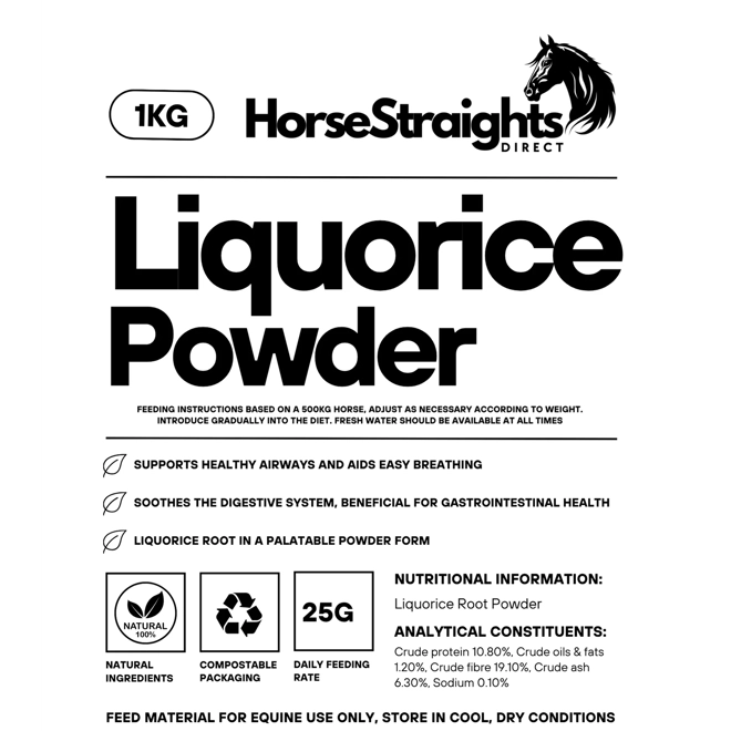 Liquorice Powder For Horses 100% Natural Horse Supplement. Premium Quality Horse Herbs Equine Supplements in 100% Compostable Packaging Horse Straights Direct Liquorice Powder - Tested for Equine Use Only...