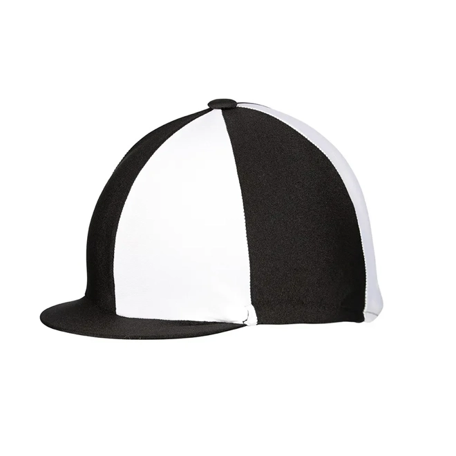Hy Equestrian Two Tone Hat Cover, available in a variety of chic color combinations to suit every equestrian's taste. Crafted from high-quality, stretchy Lycra, this hat cover ensures a snug fit on all riding hats, while the elasticated bottom provides added security during your rides. The eye-catching design features alternating panels of contrasting colors, topped off with a sturdy button at the crown, making it a fashionable and functional accessory for any rider.