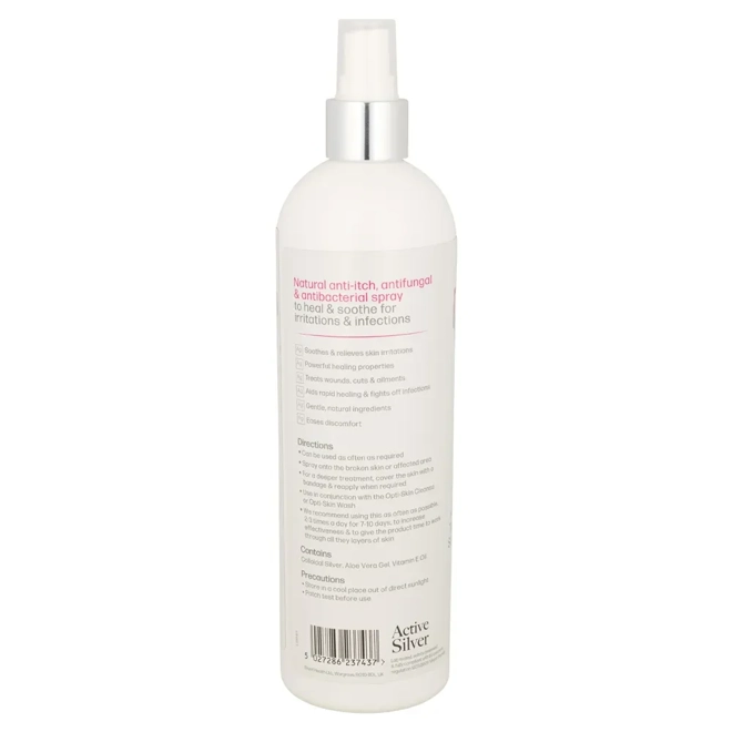 Hy Equestrian have teamed up with Active Silver to bring you the new Silver Care Opti-Gel Spray. Colloidal Silver and Aloe Vera combine to create a natural soothing lotion that is effective for calming skin traumas and irritations. This unique formula penetrates through skin layers, gently treating skin so it heals rapidly and eases discomfort. Using only 100% natural quality ingredients that boast powerful antibacterial and healing properties to aid with infections, cuts and scrapes.It is recommended to use 4-6 times a day. Simply rub it into the broken skin or affected. For a deeper treatment, cover the skin with a bandage and reapply often. To increase effectiveness, use in conjunction with our Silver Care Opti-Skin Cleanse or Silver Care Opti-Skin Wash.